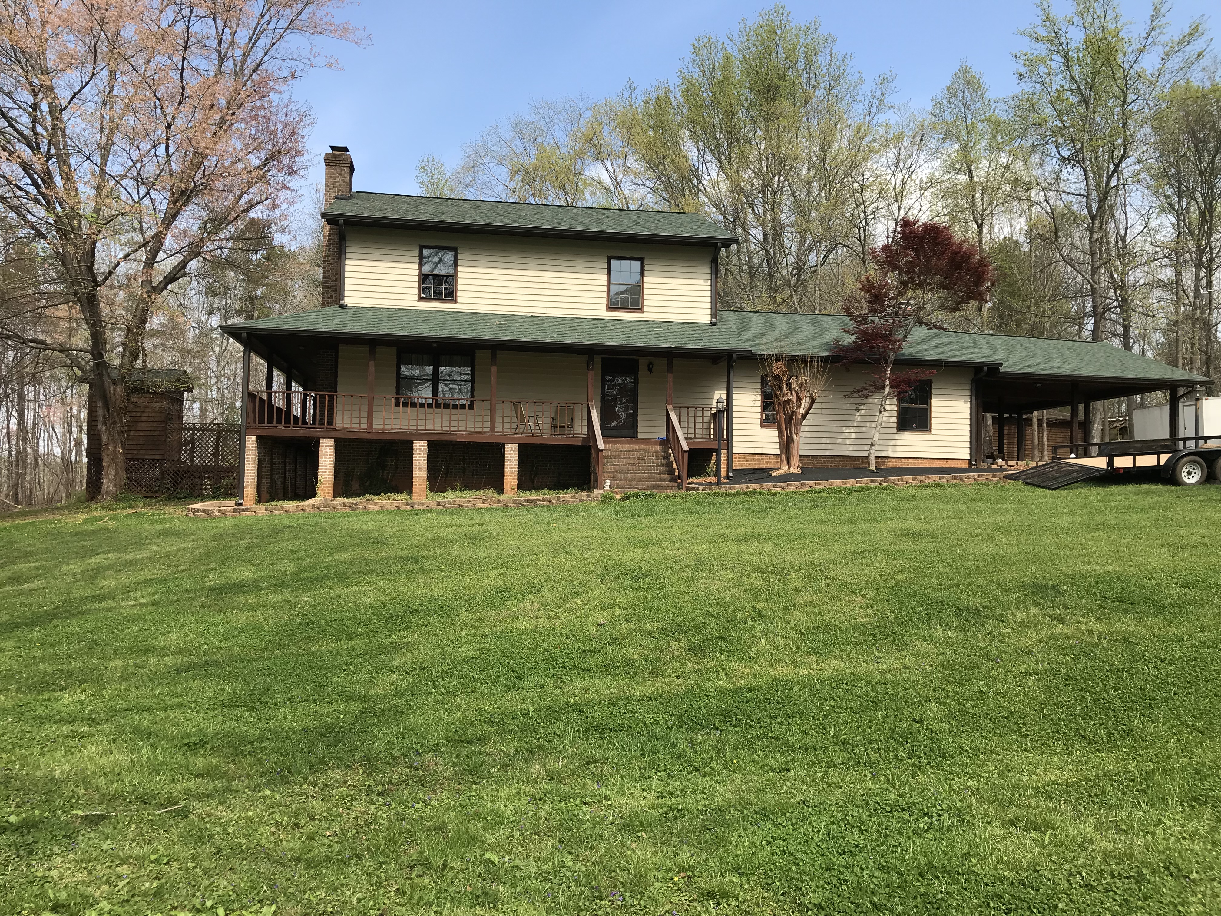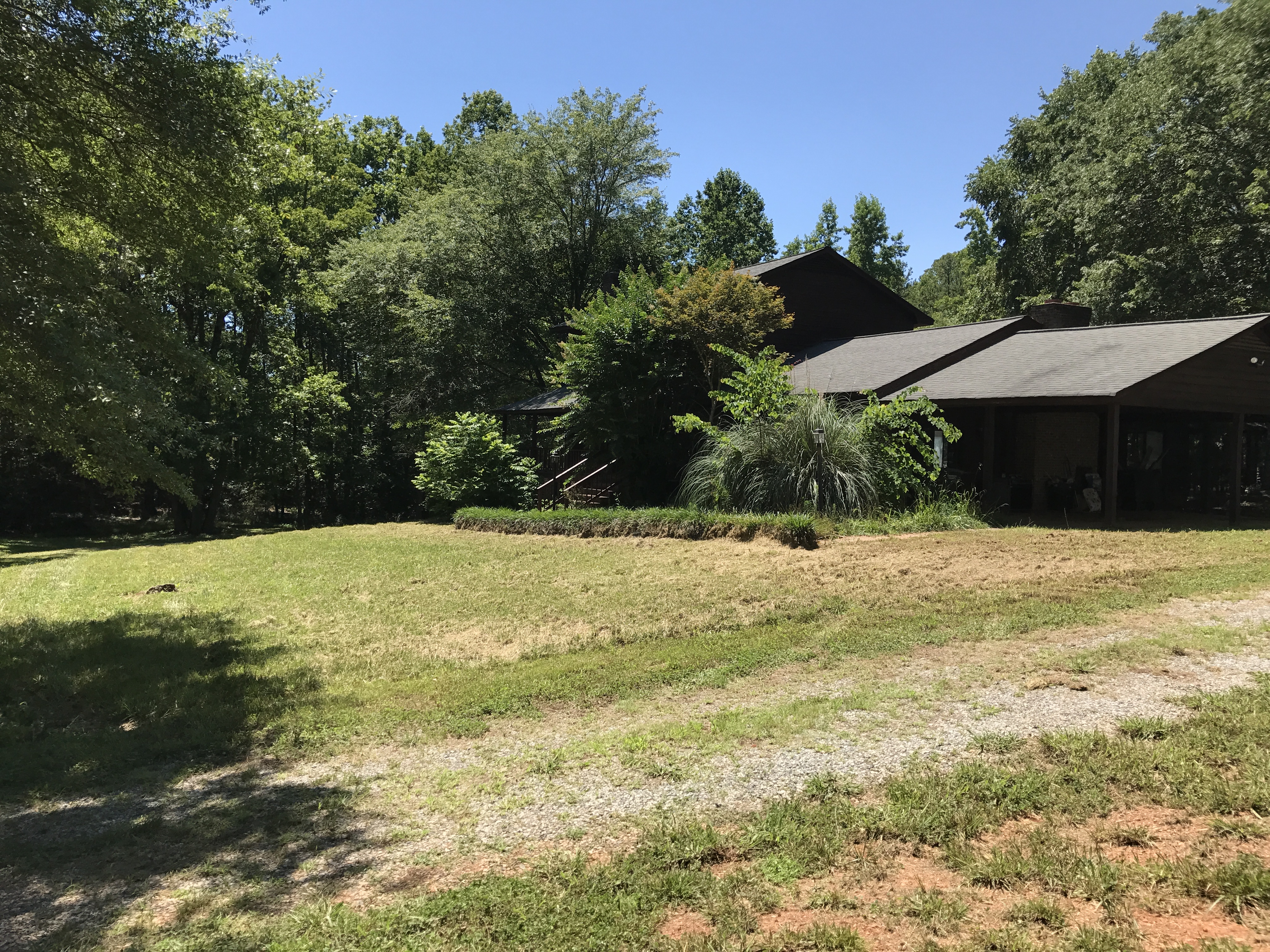 So enamored were we with the idea of land and a house where we couldn’t see the neighbors when we looked at the property, we didn’t notice/care that the water supply well is ¼ mile from the house at the barn; the former owners apparently attempted to set the porch on fire; the multitude of debris piles throughout the property; or the crazy amount of land clearing that was needed, just to name a few issues. But in spite of all of these challenges, buying this land has given us a great sense of accomplishment. We can look around and see progress all the time, and we will never run out of projects.