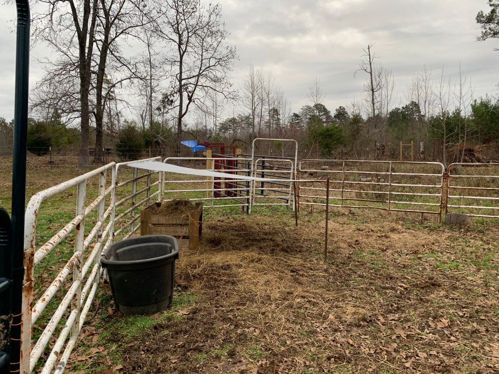 All in all, I don’t miss the old set up, much preferring our new round pen. And weaning is easier now with split (hopefully) calf resistant pastures. However, the hay crib is still around and I keep it as insurance again having to confine anyone in a small space that needs hay.