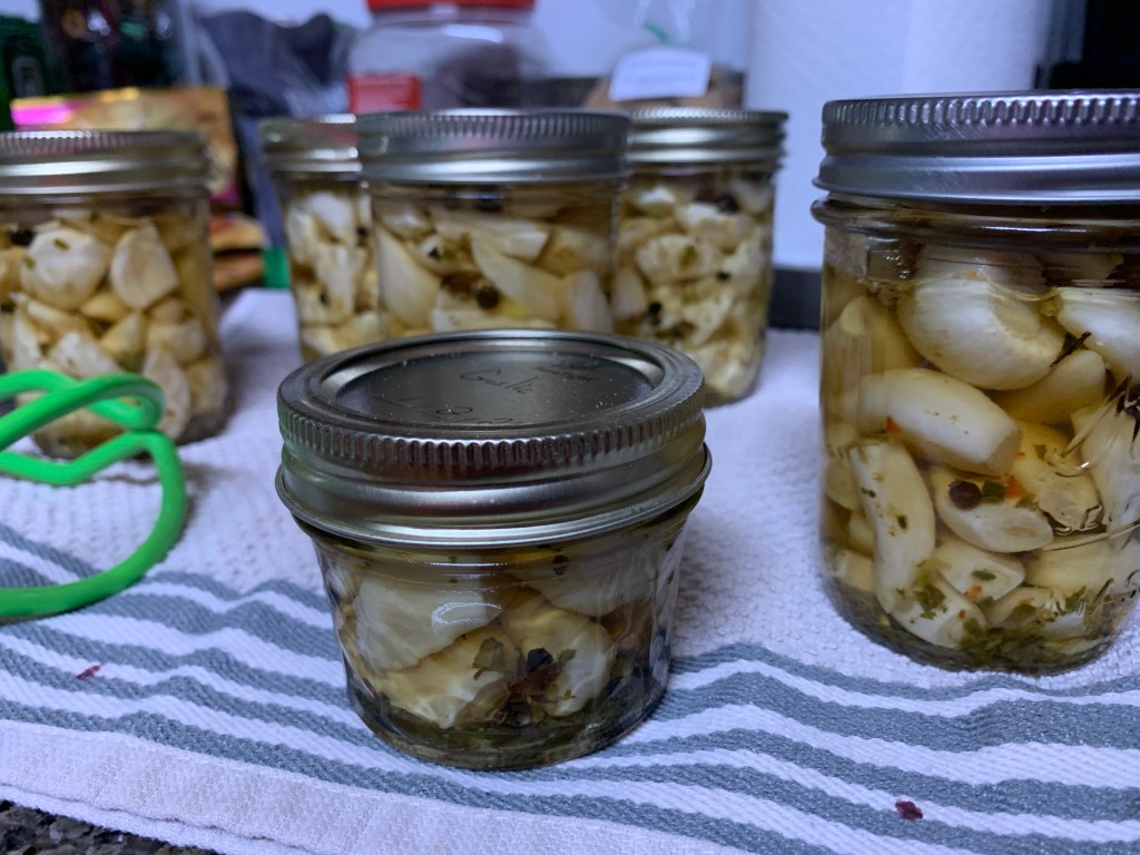 Enter the canning jars. Ordinarily, I only peel the cloves that I need; but we decided to peel and pickle most of the garlic to make it last the rest of the season until the German red and whites I have for summer 2022 are ready. And not only pickle, but spice and pickle!