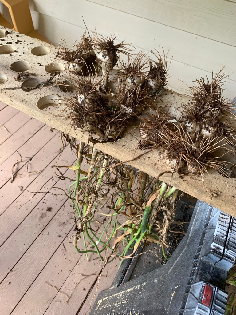 Last summer, we had so much garlic that my husband cut a special board just for drying the bulbs!