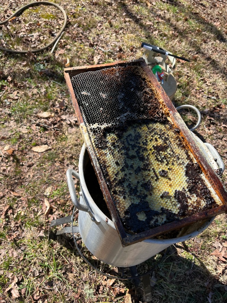 I deeply regret every moth I’ve ever let out of the house now. On to clarifying the salvaged wax!